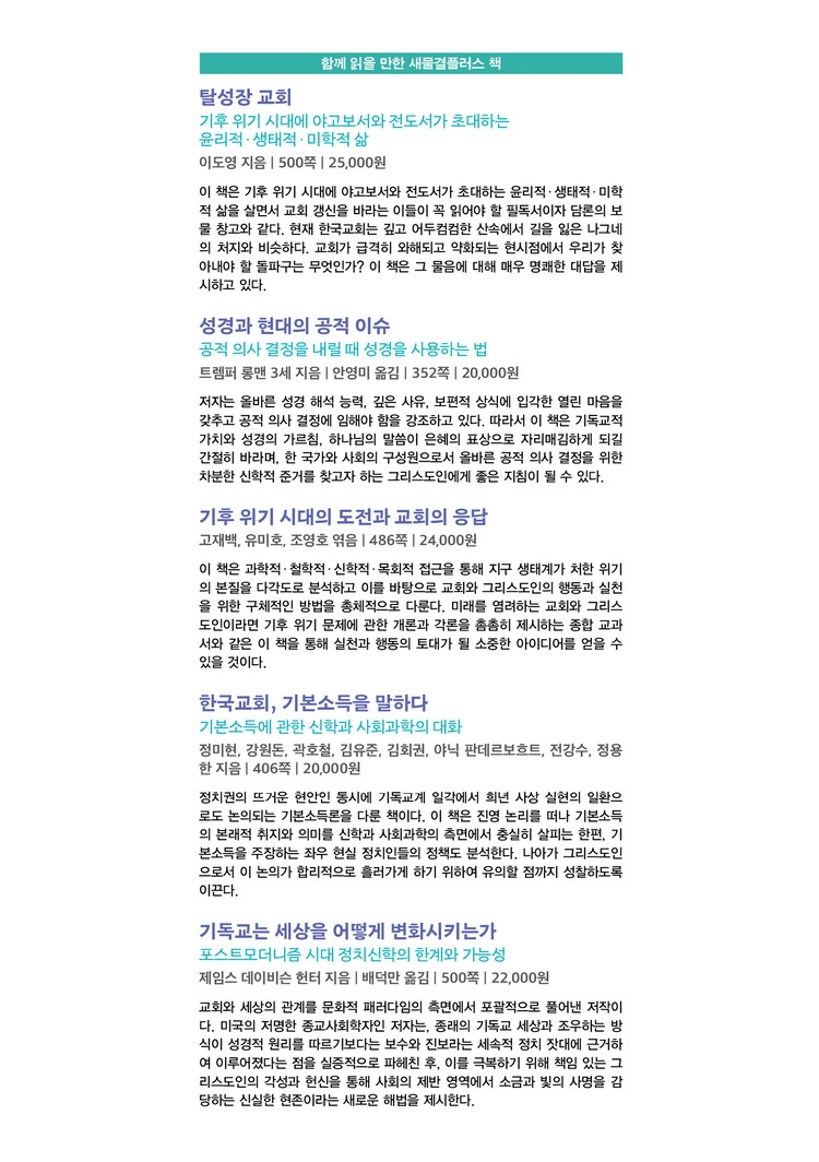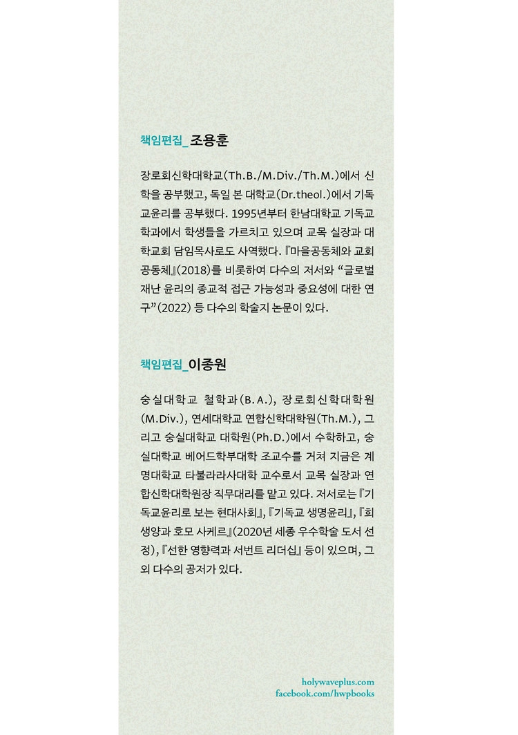 세상은 온통 “능력주의”로 뒤덮여 있는 듯 보인다. 능력주의가 지닌 긍정적인 면이 많지만, 부작용도 적지 않다. 능력주의에 대한 우려와 비판의 목소리가 커가고 있는 현실에서 일곱 명의 기독교윤리학자가 이 책에서 대안을 모색하고 있다. 독자들은 아마도 나처럼 책을 읽기 시작한 순간부터 깨달음의 기쁨과 새로운 소명감이 살아나는 경험을 하게 될 것이다. 보다 더 공정한 세상을 위해 기도하며 애쓰는 모든 그리스도인이 꼭 읽었으면 좋겠다는 마음으로 이 책을 적극 추천한다.