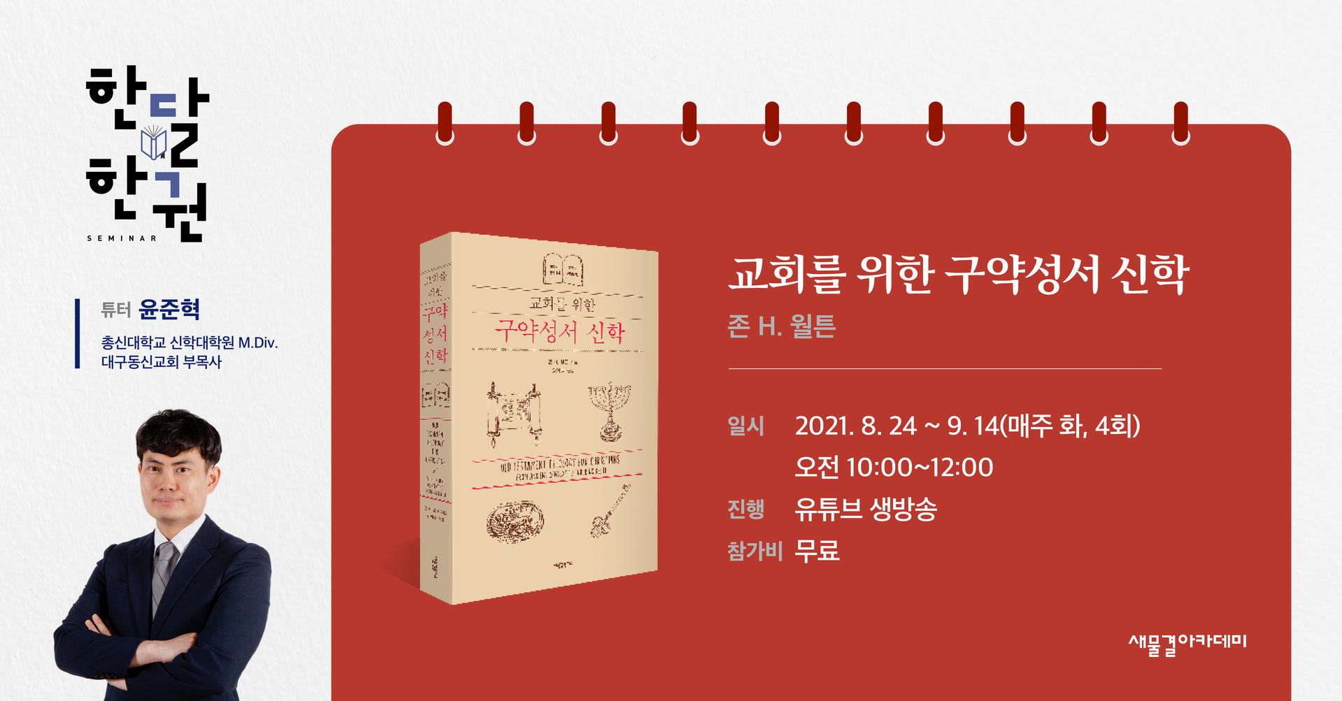 이번 모임을 통해 신구약 성서의 연속성과 상호 의존 관계, 그리고 기독교 신학을 더욱 풍성하게 이해할 수 있기를 바랍니다.