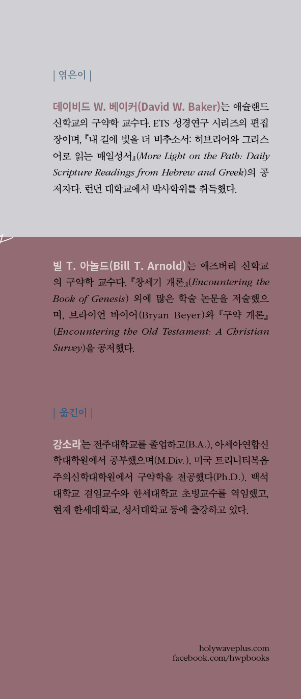 이 책의 목표는 구약 연구의 다양한 분야를 한 권으로 요약하는 것이다. 구약학의 맥을 정확히 짚어주고 미래의 방향으로 친절하게 안내하는 구약학 가이드북의 출현이 구약학도들의 가슴을 뛰게 할 것이다.