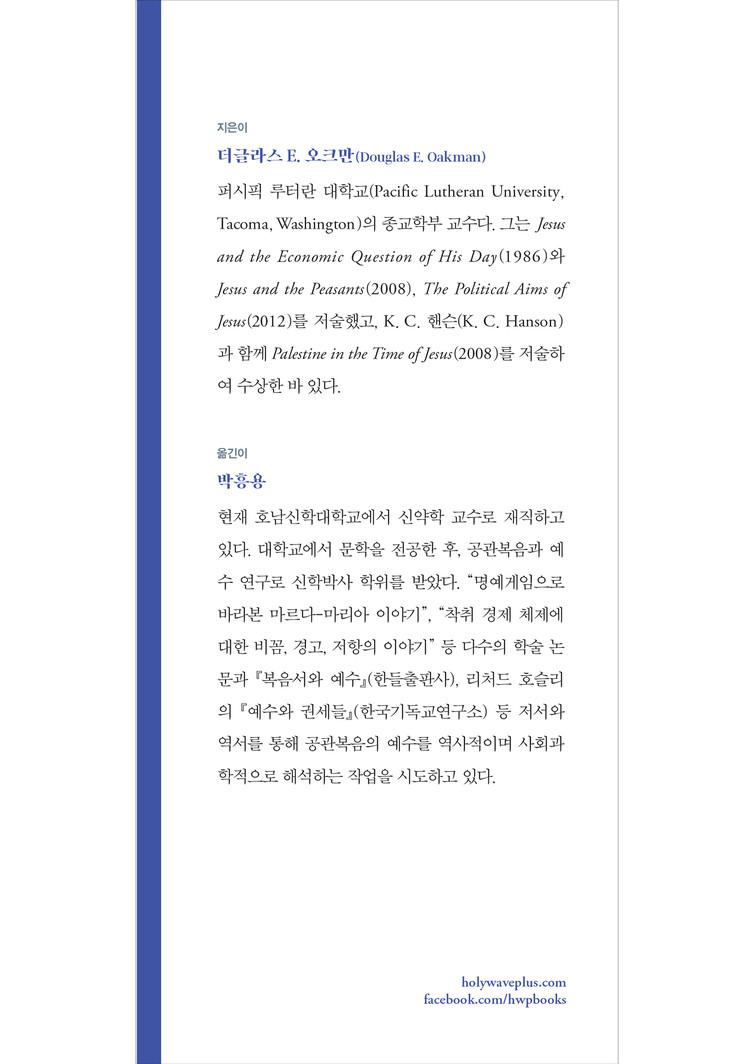 신실한 개인적 확신을 가지고 기록한 이 책은 통찰력 넘치고 그래서 수많은 유익을 가져다주는 오크만의 정치적이며 사회경제적인 분석을 통해 가난한 자들에 대한 우선적인 관심이 역사적 예수가 보인 특별한 특징임을 확인해준다.