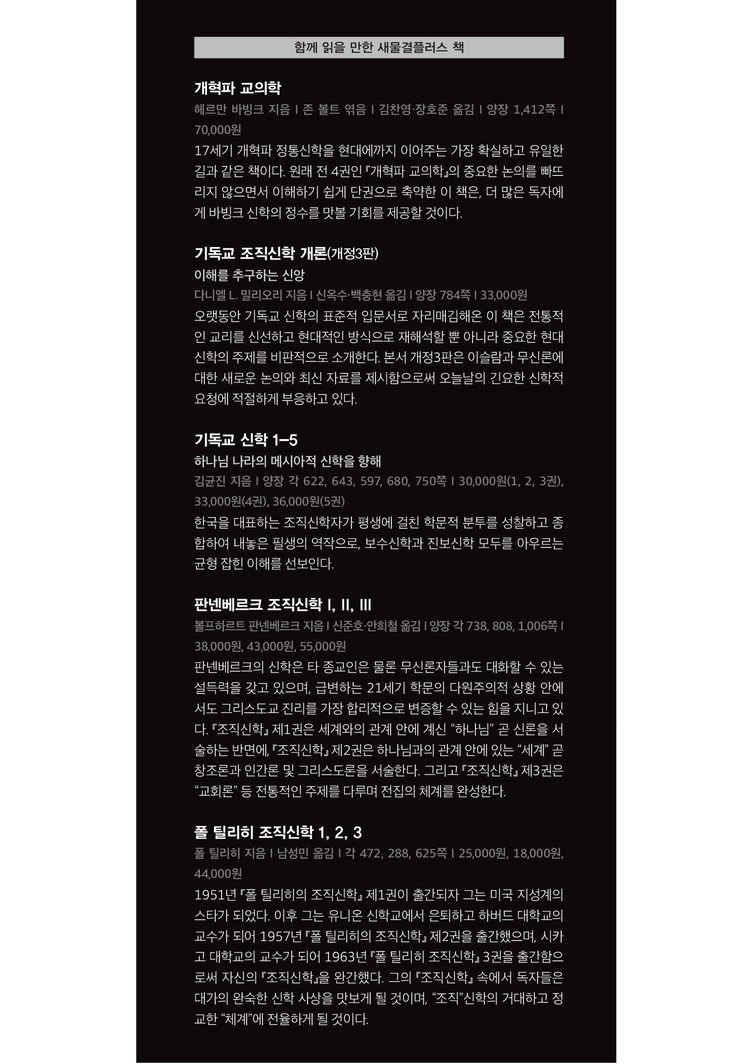 오늘의 한국교회가 개혁 신학의 뿌리를 디디고 보다 성숙한 발전을 이루어온 배경에는 소위 “바빙크 신학의 르네상스”라 부를 만한 흐름이 자리하고 있다고 본다. 이 책은 학계에만 머무르지 않고 보다 폭 넓게 성도들에게 가까이 다가가 개혁 신앙의 전반적 교리들을 올바르게 접하도록 돕는 귀한 역할을 하게 되리라 믿어 의심치 않는다.