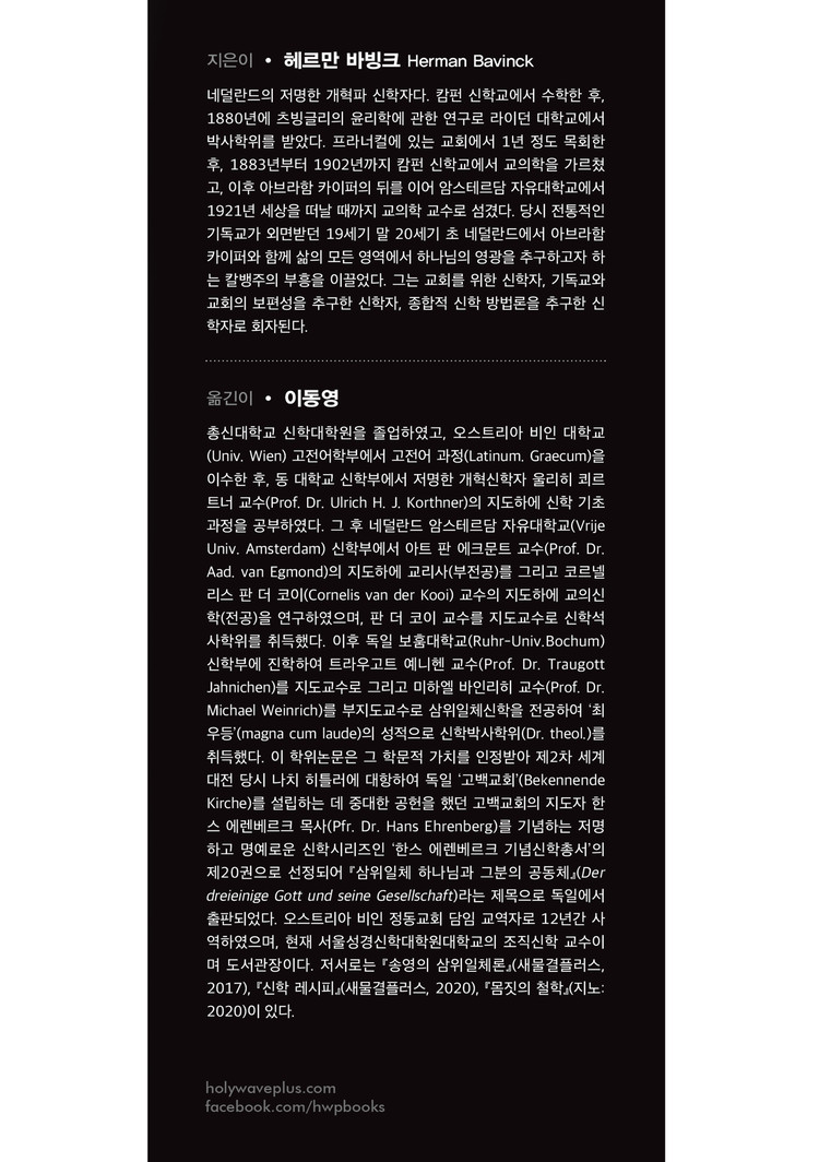 오늘날 하나님과 그리스도교 신앙에 관한 언어가 왜곡되고 불신이 팽배한 시대 속에서, 100년 전의 바빙크가 건네는 이 오래된 진리는 오히려 가장 현대적인 답변이 되어 우리를 삼위일체 하나님에 대한 더 깊은 이해와 찬양으로 인도한다. 하나님의 아름다우심과 위대하심을 새롭게 음미하며 신앙의 기쁨을 되찾고자 하는 모든 한국의 성도들과 청년들에게 이 책은 흔들리지 않는 영적 자산이 되어줄 것이다.